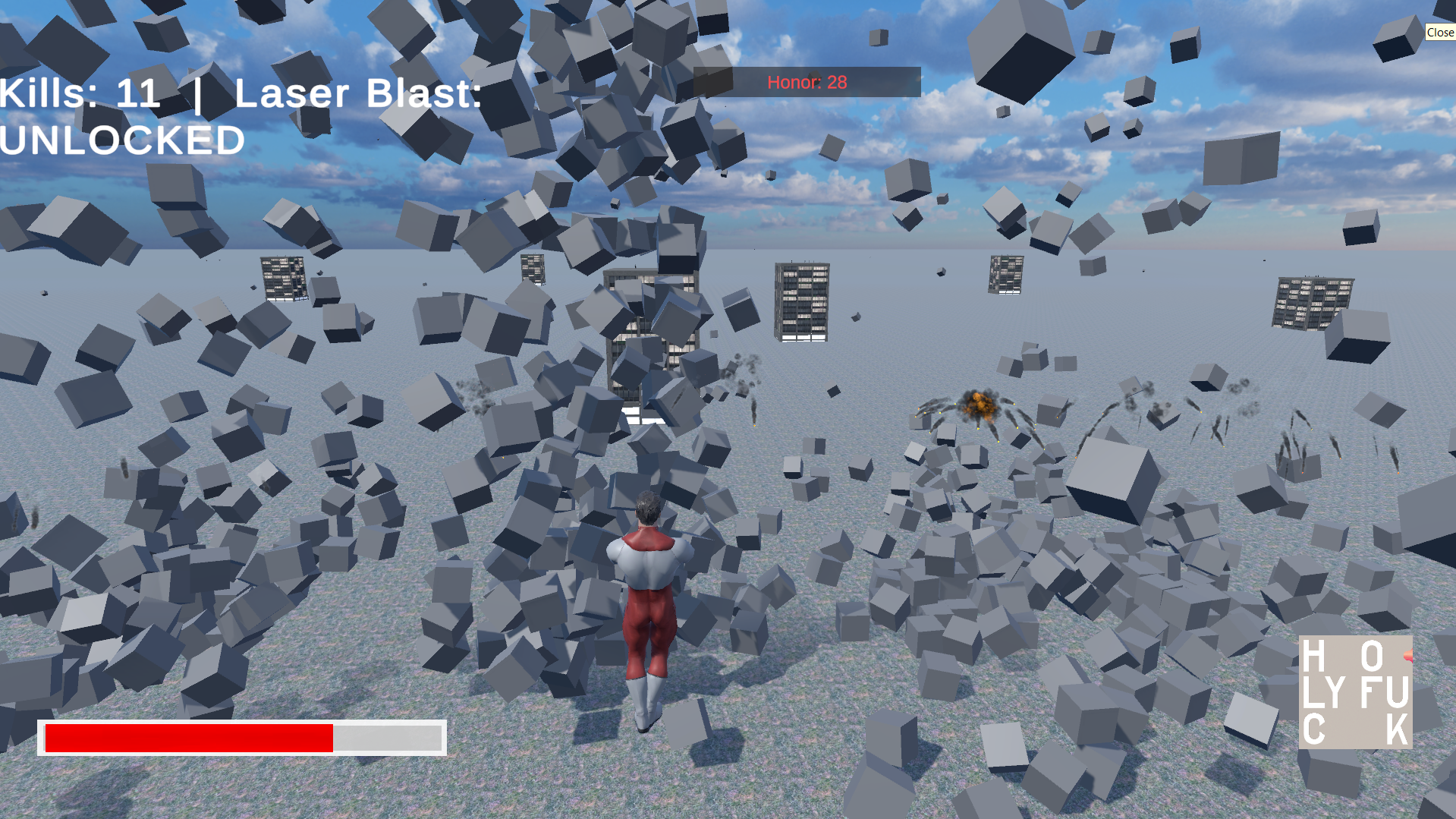 Fly around as a superhero! Shoot lasers from your eyes, punch bad guys, grab enemies, and ram through buildings at supersonic speed. Made this for fun - if it hits 100 downloads I'll add more stuff!